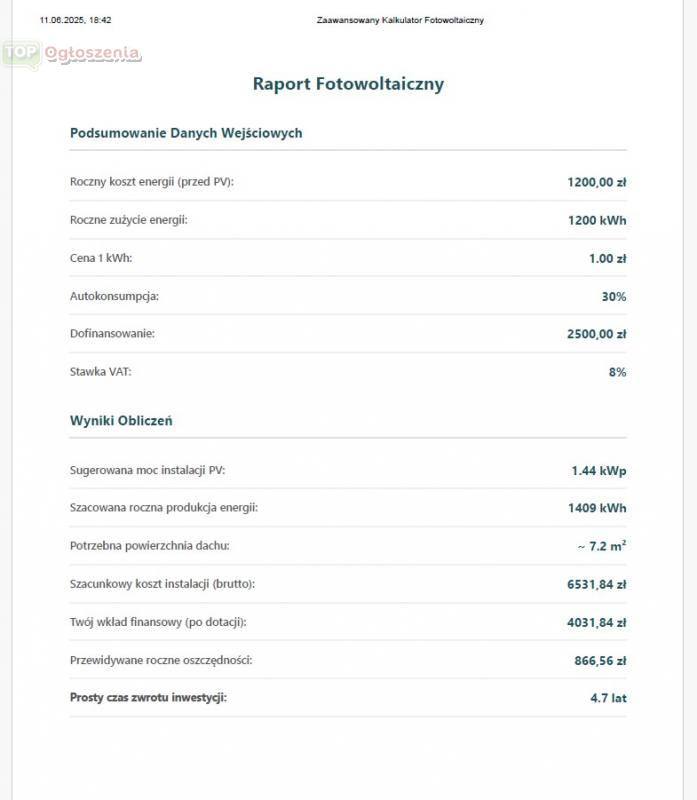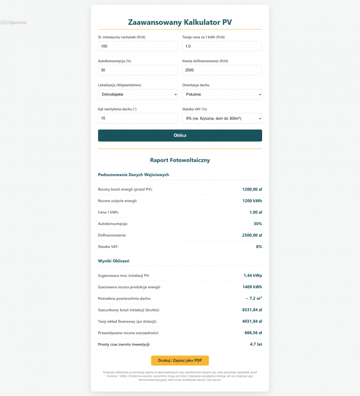 Kalkulator fotowoltaiki
